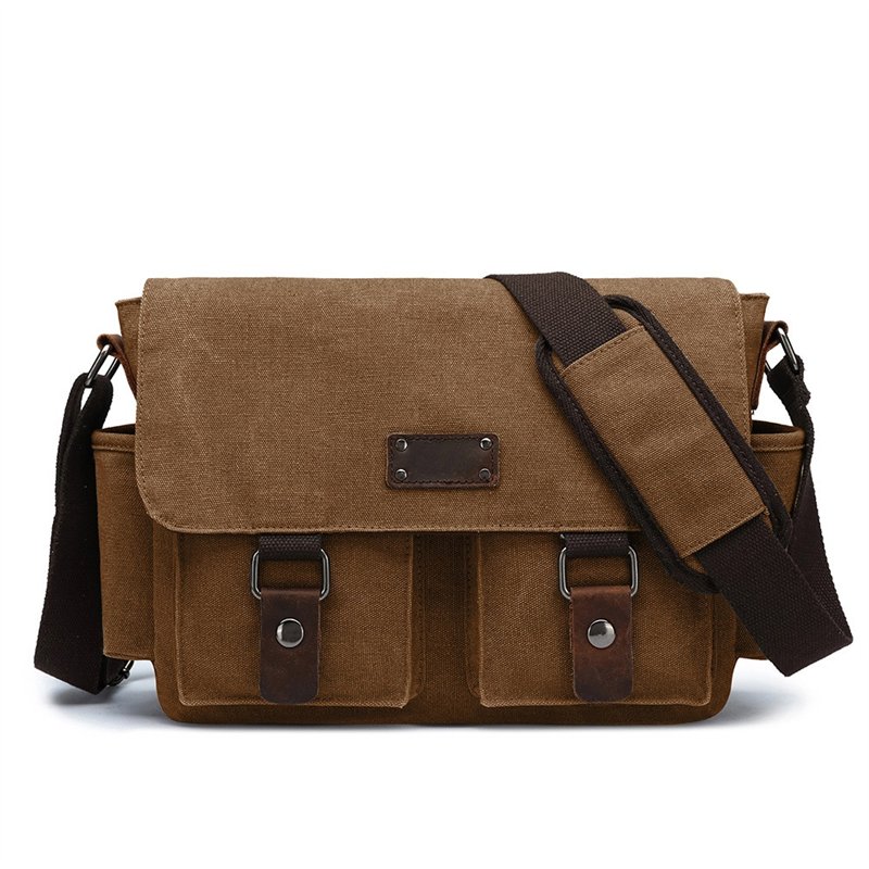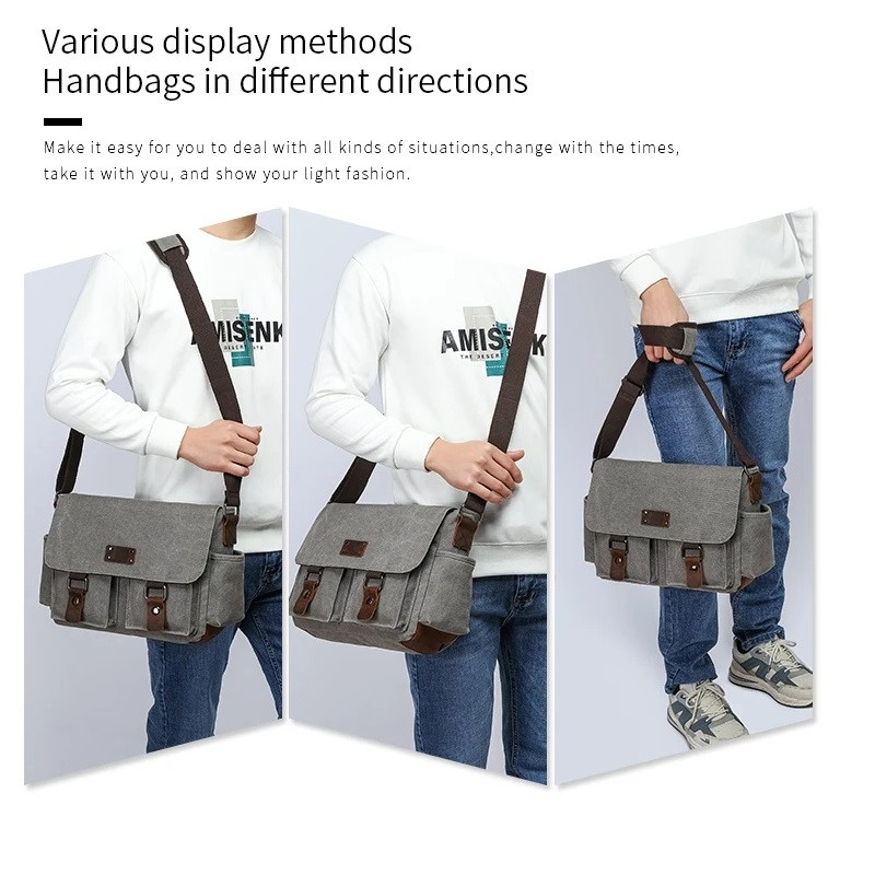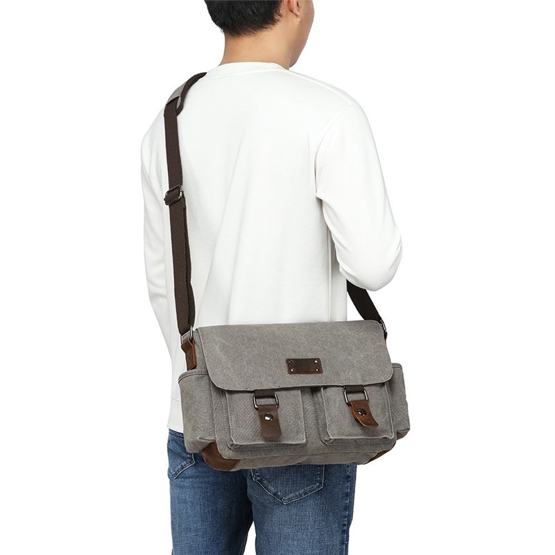 Stylová a praktická brašna přes rameno v moderním minimalistickém designu. Vhodný pro každodenní nošení do práce, školy i na volný čas.  Taška je vyrobena z odolného textilního materiálu v kombinaci s ekologickou kůži v retro stylu. Taška má hlavní komoru se zapínáním na zip. Uvnitř je boční kapsa na zip + přepážka na tablet 17 x 30 cm. Z přední strany pod klopou jsou dvě kapsy 14 x 13 cm. Klopa se zapíná na magnet. Z boční strany jsou dvě kapsy na láhev nebo deštník. Ze zadní strany je kapsa na zip. Popruh je napevno a je o délce 150 cm. Do tašky vejde formát A4.