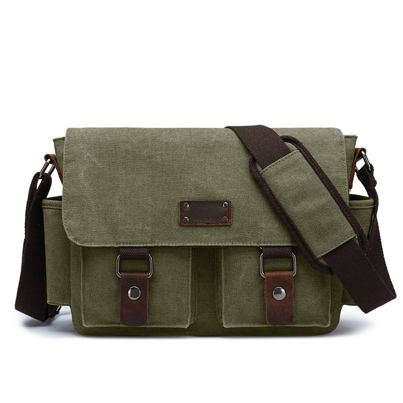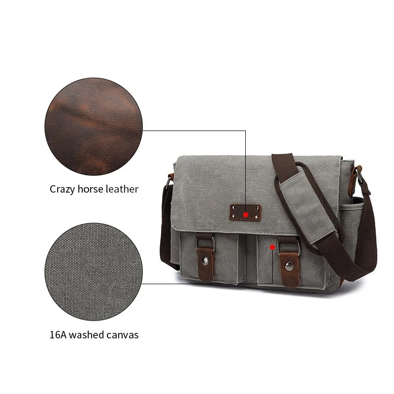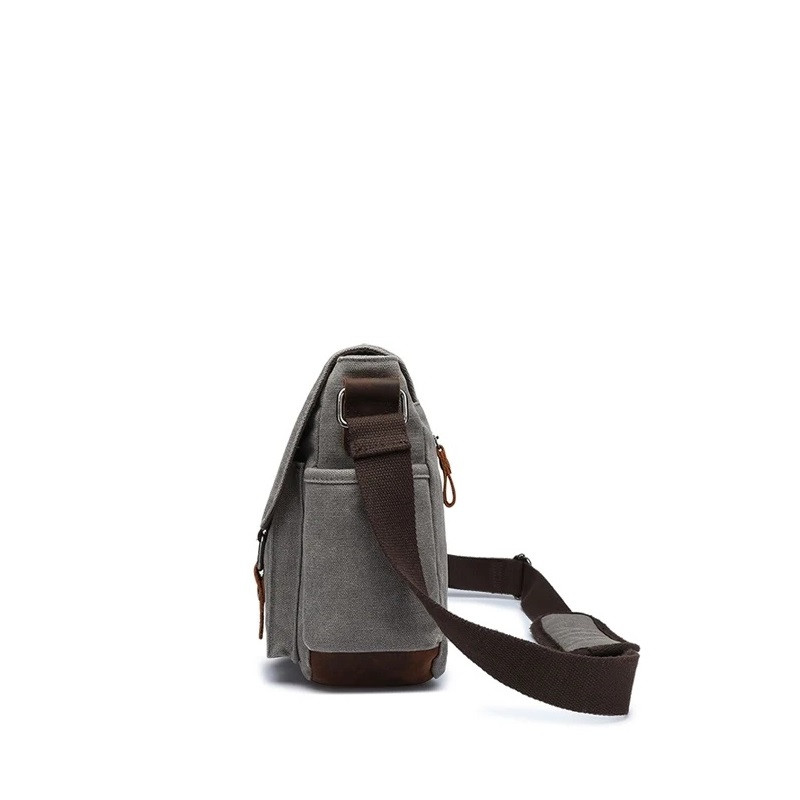 Stylová a praktická brašna přes rameno v moderním minimalistickém designu. Vhodný pro každodenní nošení do práce, školy i na volný čas.  Taška je vyrobena z odolného textilního materiálu v kombinaci s ekologickou kůži v retro stylu. Taška má hlavní komoru se zapínáním na zip. Uvnitř je boční kapsa na zip + přepážka na tablet 17 x 30 cm. Z přední strany pod klopou jsou dvě kapsy 14 x 13 cm. Klopa se zapíná na magnet. Z boční strany jsou dvě kapsy na láhev nebo deštník. Ze zadní strany je kapsa na zip. Popruh je napevno a je o délce 150 cm. Do tašky vejde formát A4.